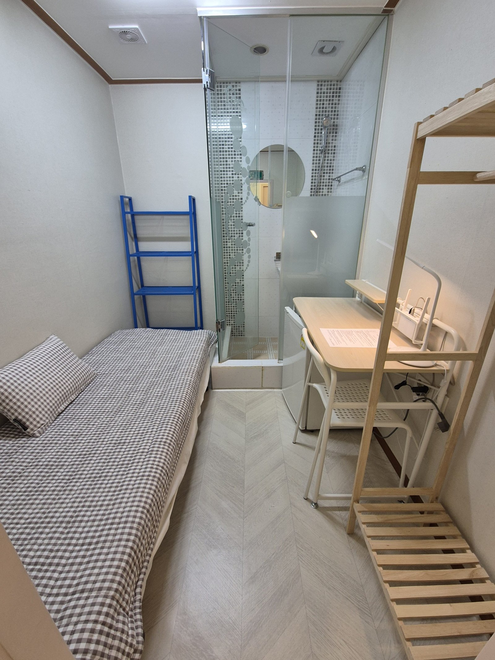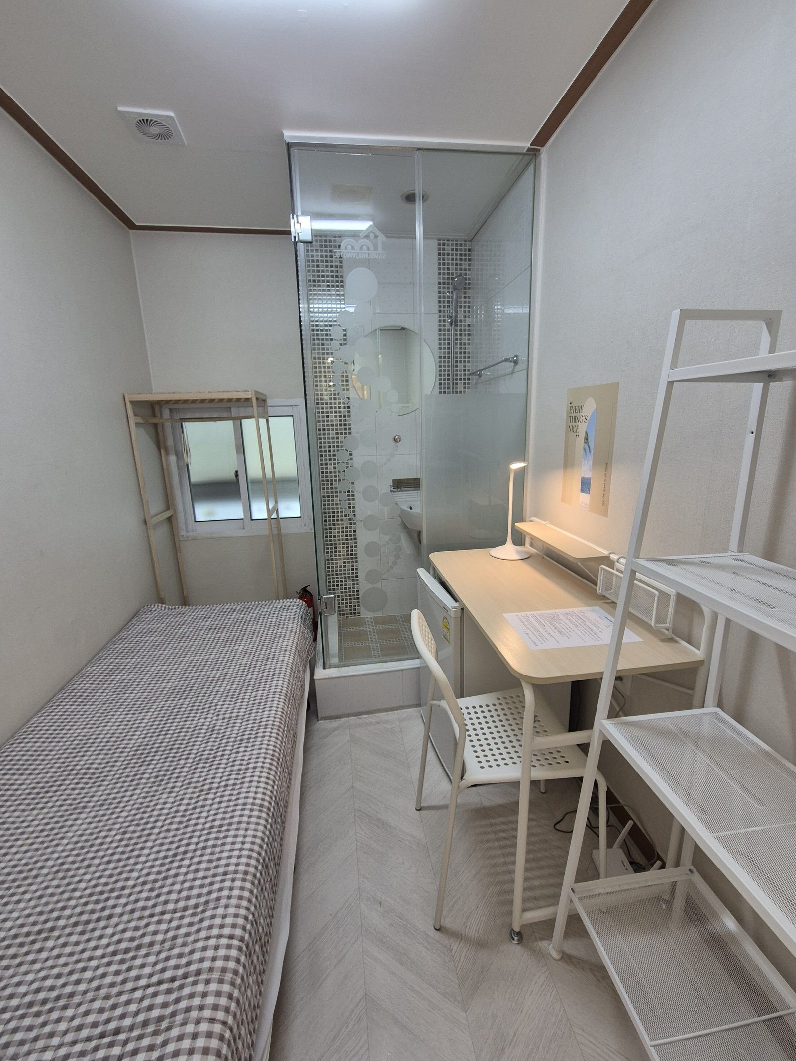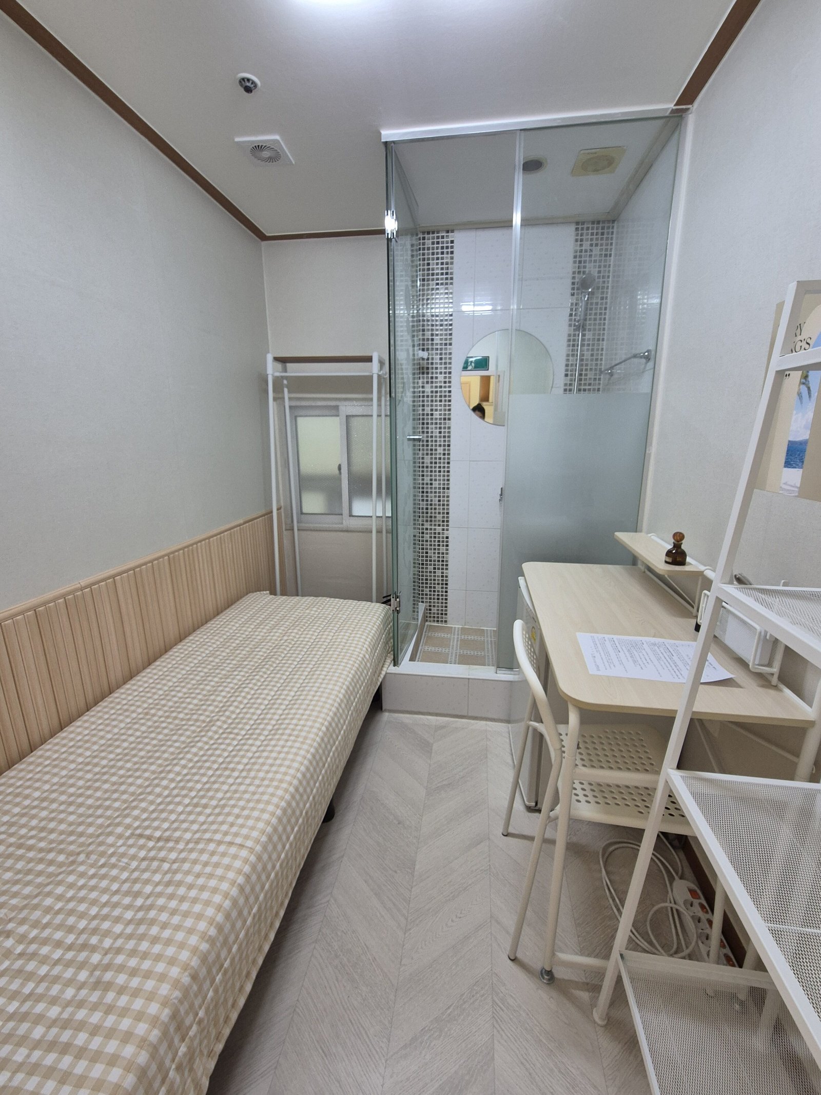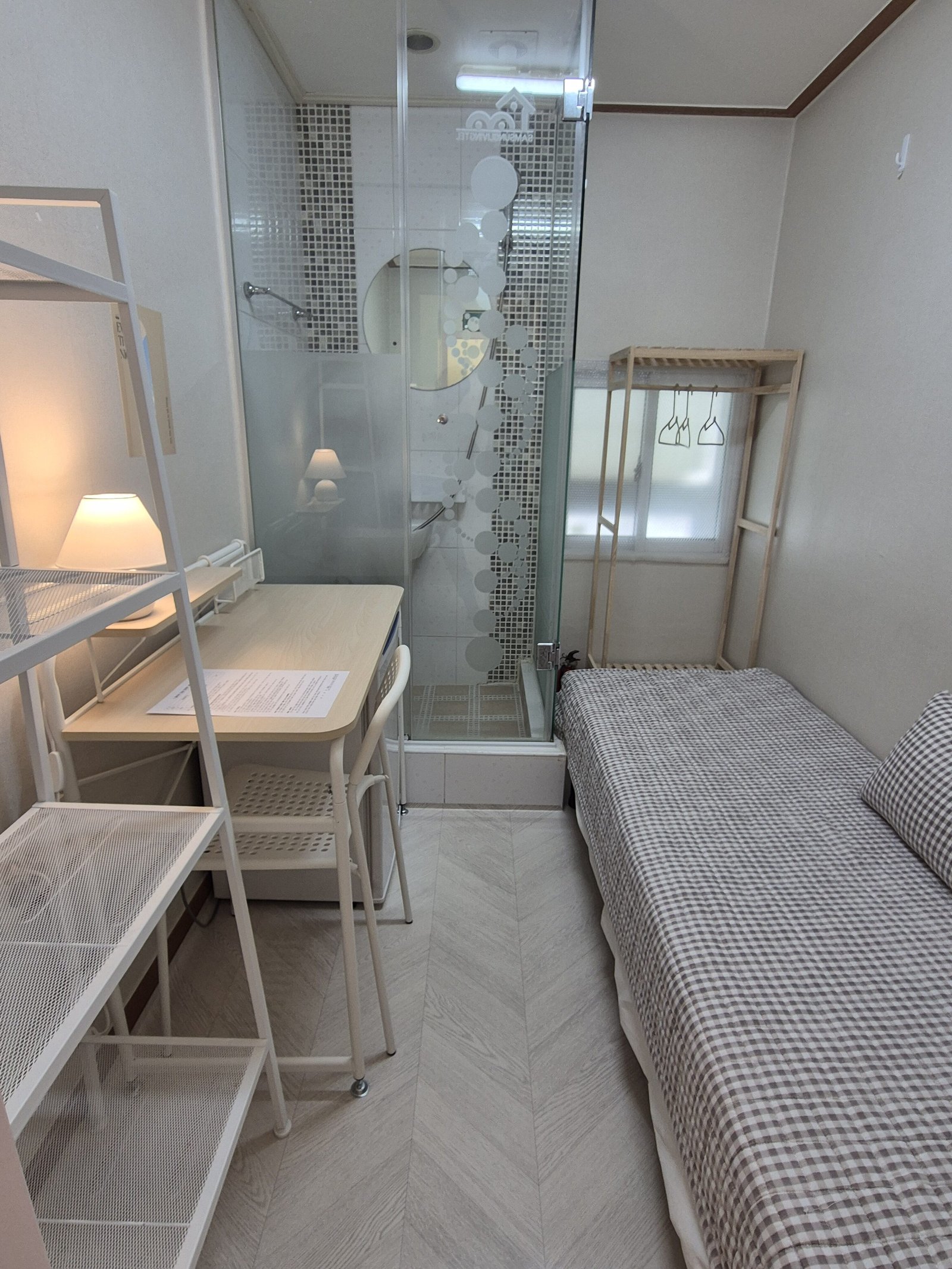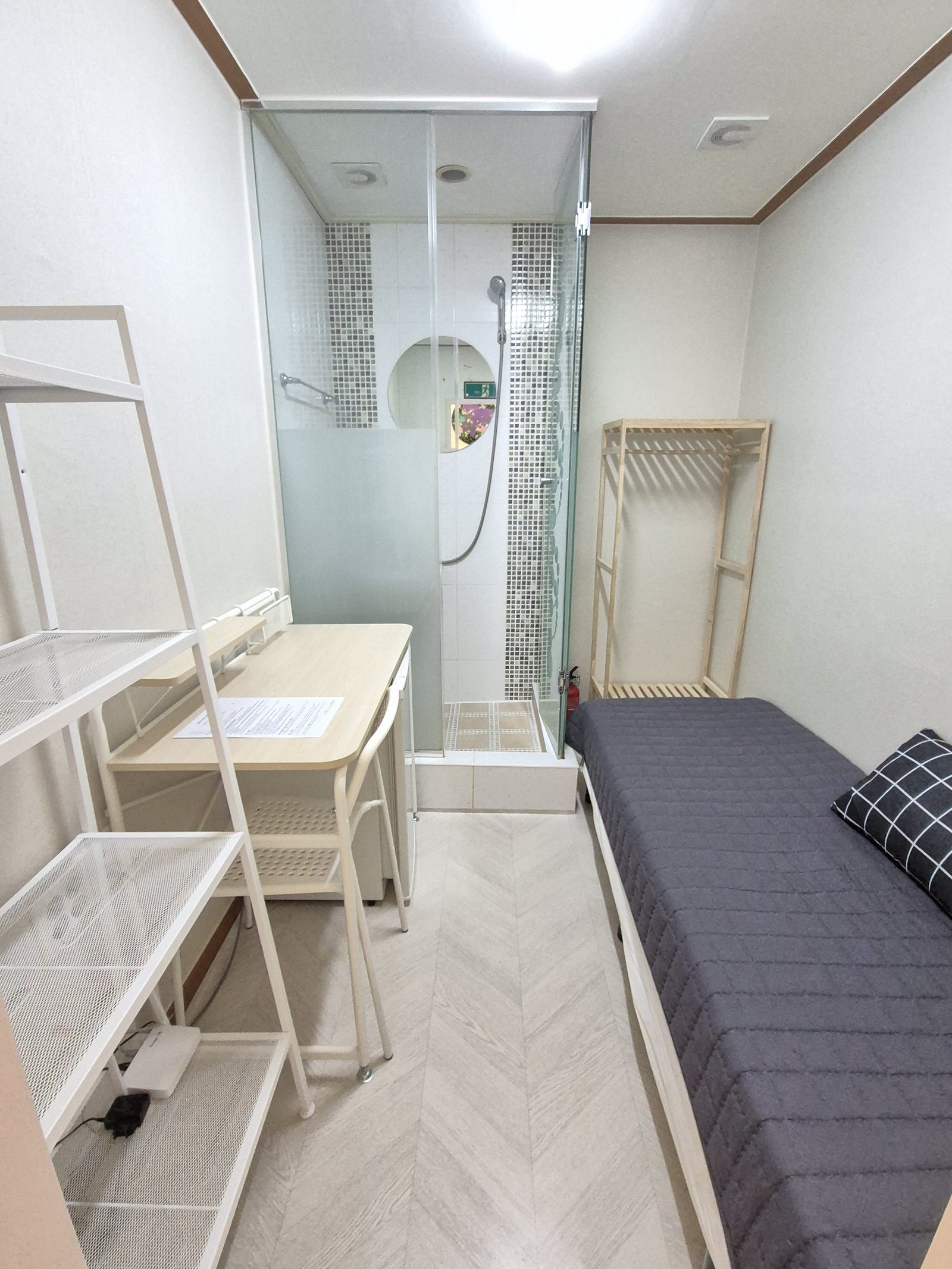 Since there are no shower booths or toilets inside the room, you can fully utilize the entire room space without any interruptions. This means you won’t have to worry about humidity or personal bathroom cleaning, which is a convenient advantage.