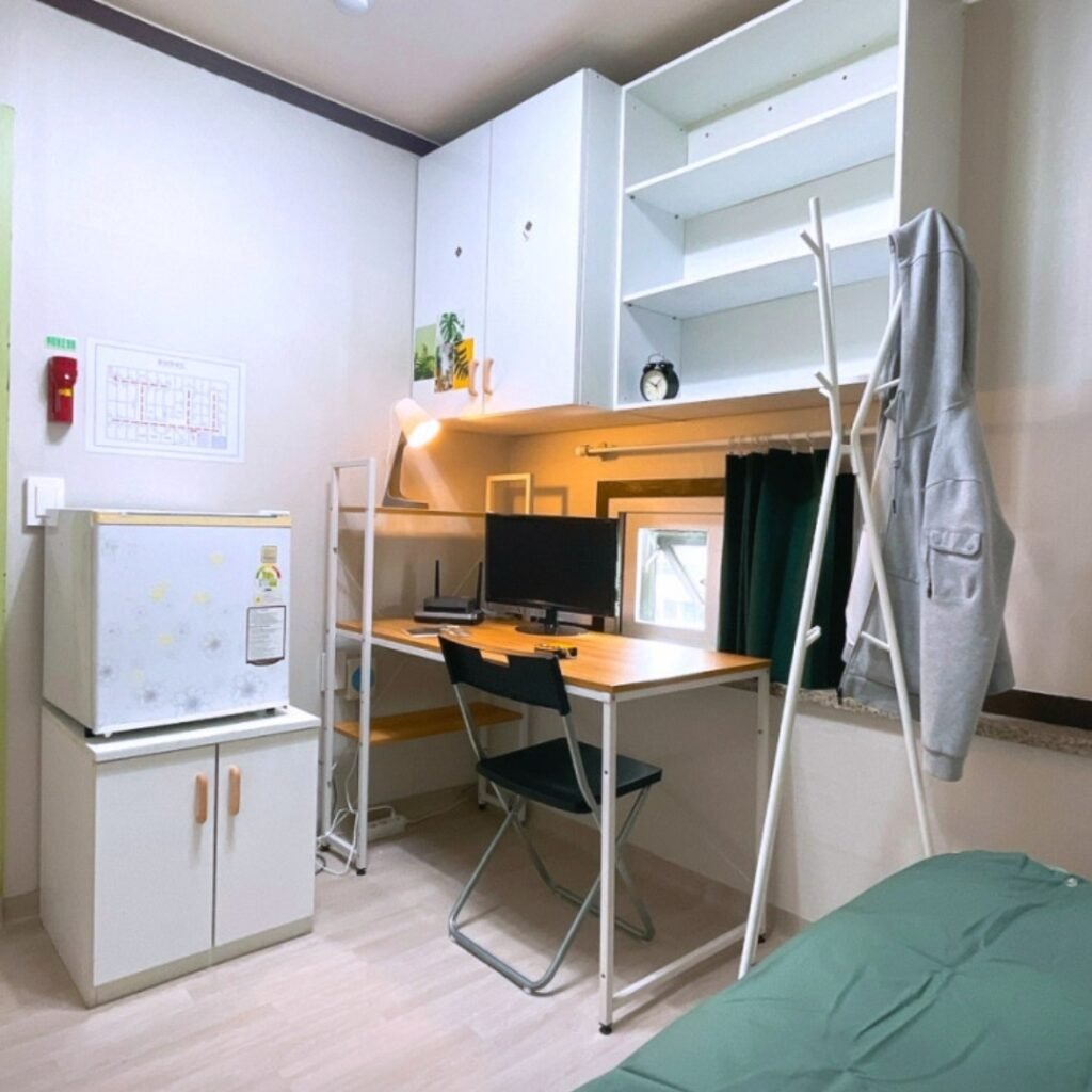 This is a goshiwon located at Ajou University Intersection. It has shower rooms and simple rooms (mini rooms) and a manager lives there, so it is managed cleanly 24 hours a day. It is located on the main street, so it is also excellent for security and easy for women to access alone at night.